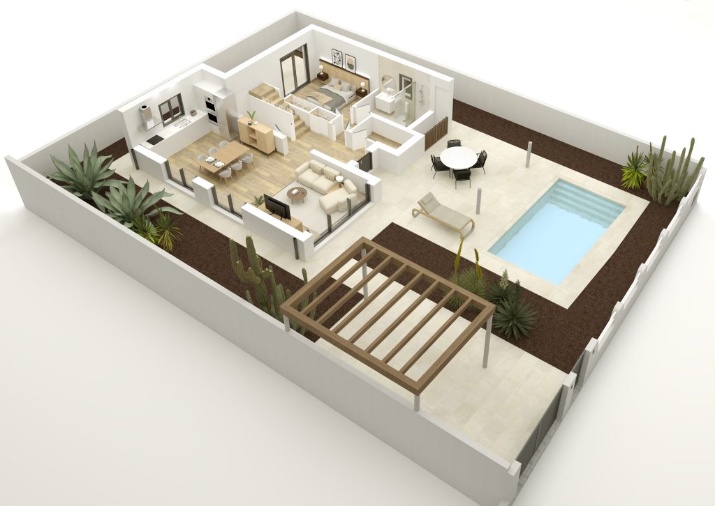 Distribuidas en 2 niveles, cuentan con 3 dormitorios, 2 baños, salón integrado con cocina y zona de comedor en un gran espacio diáfano, trastero, zona de tendedero, piscina en parcela, aparcamiento y jardín. El dormitorio principal integra en suite zona de vestidor y baño. Una de las escasas oportunidades de adquirir obra nueva en una isla que es Reserva de la biosfera.