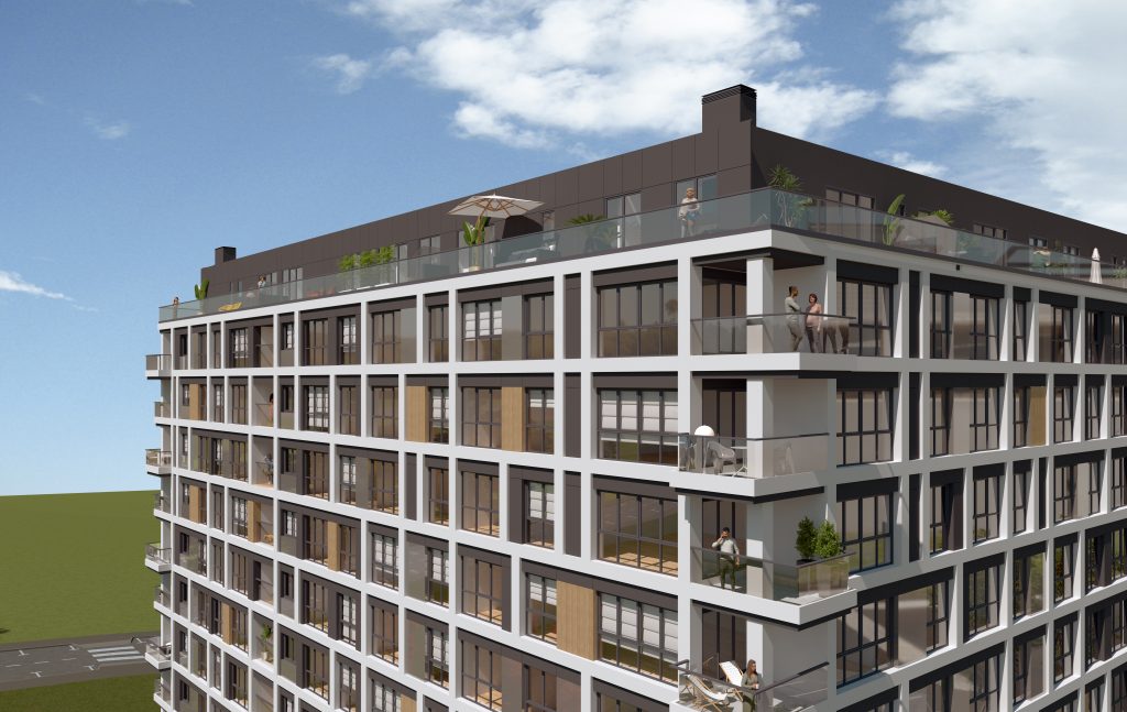 Residencial Atlántica es un singular conjunto de obra nueva formado por 114 viviendas, mayoritariamente de 3 dormitorios, todas ellas con terraza exterior, plaza de garaje y trastero. El edificio se organiza en 10 alturas, con 107 viviendas de distinta tipología y 7 áticos exclusivos que disfrutan de vistas privilegiadas al mar y a la ciudad.